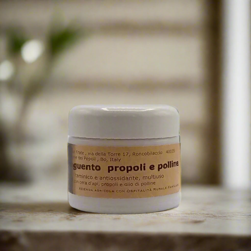Mantieni la tua pelle sana e idratata con l'unguento Propoli e Polline! Con la sua formula unica, questo unguento contiene propoli e polline per una cura naturale della pelle. Adatta per tutti i tipi di pelle, questo unguento è un must-have per una pelle radiosa!